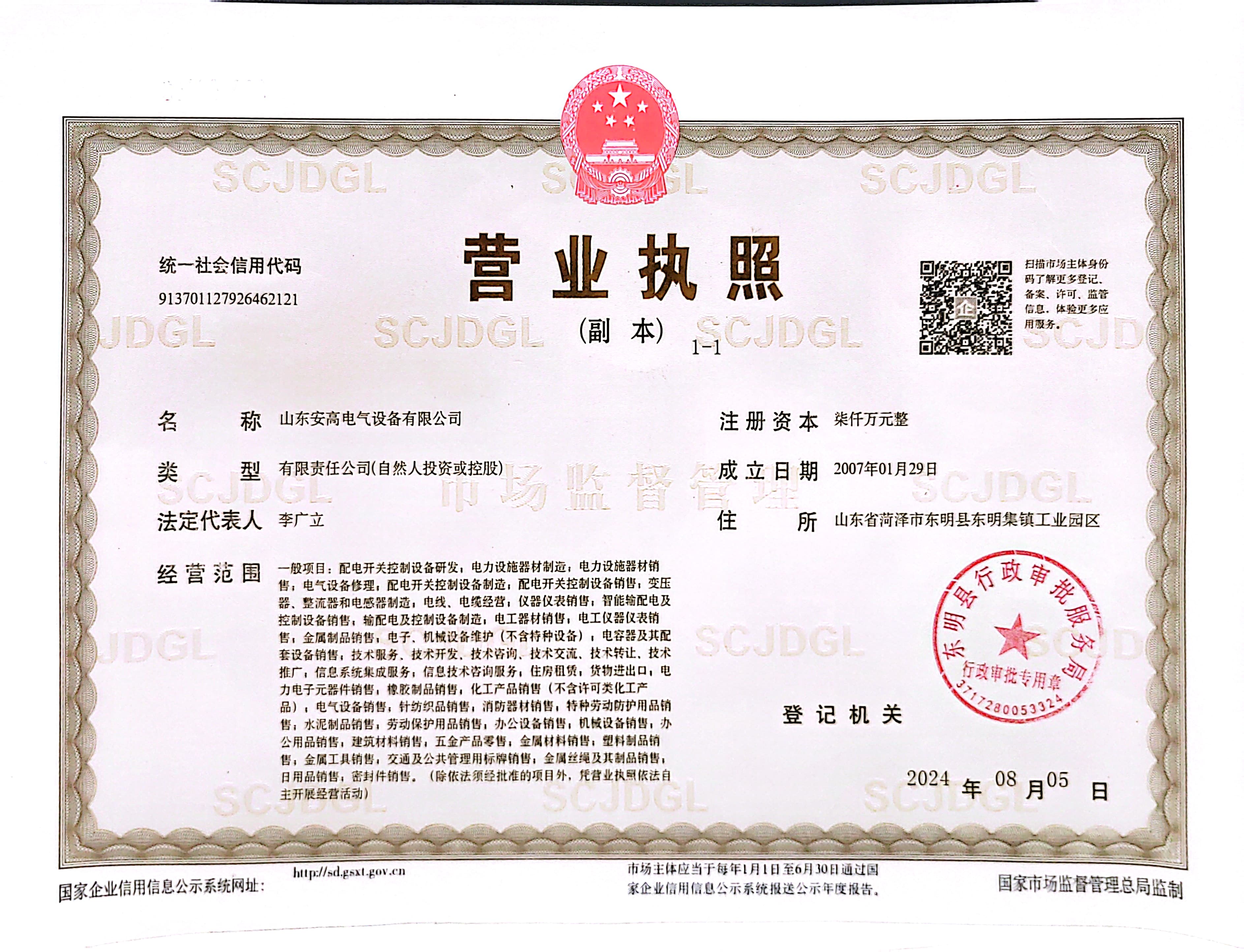 山東安高電氣設備有限公司,成立于2007年,是行業領先的電力設備系統服務商,集研發、設計、制造、營銷和服務于一體,致力于為國民經濟發展提供高端智能電力裝備。